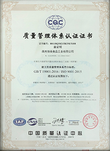 南充佳美于2008年按ISO 9000標準建立質(zhì)量管理體系,同時取得ISO 9001質(zhì)量體系認證證書,并于2018年取得ISO 9001:2015質(zhì)量體系認證證書。